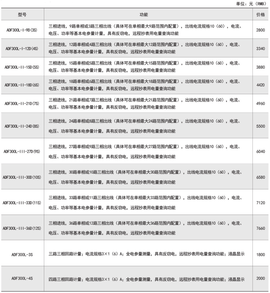 ADF300系列多用戶計量箱是一種電子式智能化多用戶電能表,設計采用一戶一計量方案,具有計量準確度高、戶與戶之間計量互不干擾、集中安裝、集中管理優(yōu)勢。可以同時計量12戶三相、36戶單相、單/三相回路混合用電狀況。