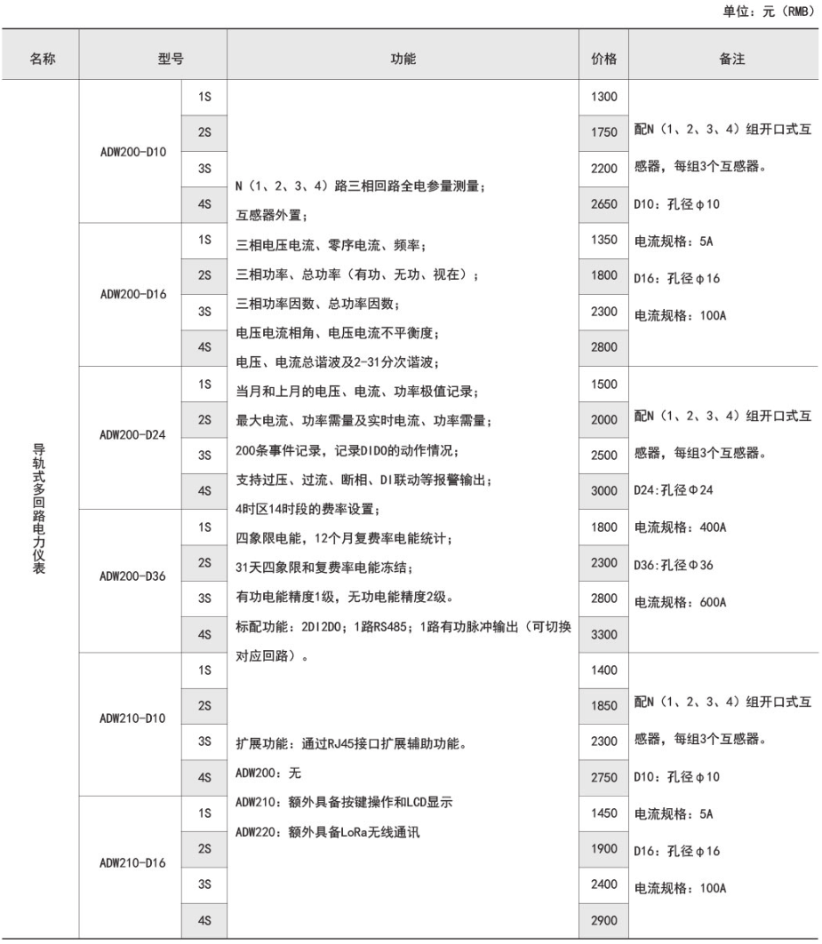 ADW2xx系列導軌式多回路電力儀表
