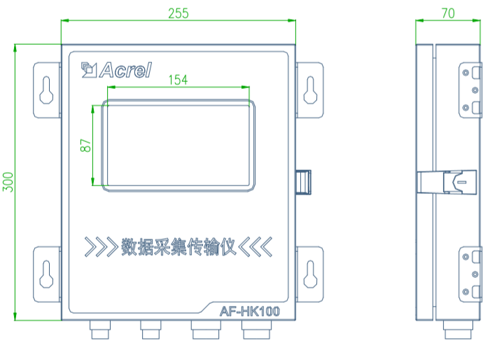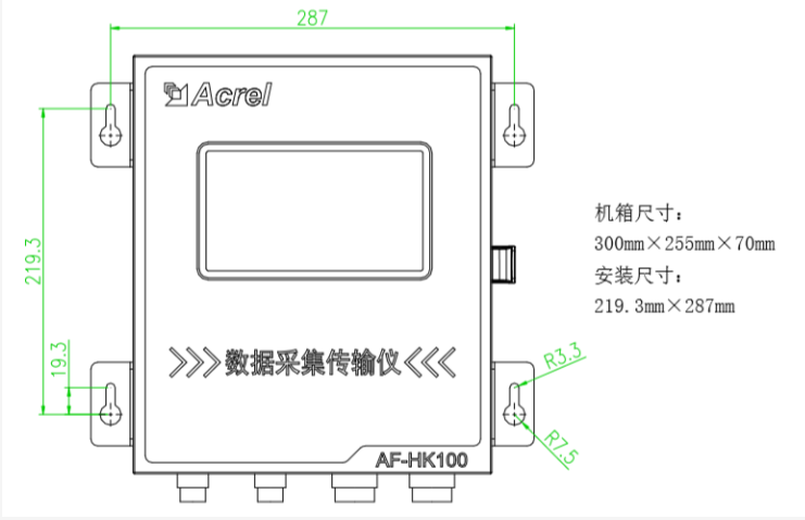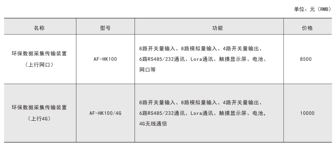 AF-HK100 污染源在線自動(dòng)監(jiān)控(監(jiān)測(cè))數(shù)據(jù)采集傳輸儀是應(yīng)環(huán)保領(lǐng)域各級(jí)國(guó)控、省控 及市控污染源環(huán)境在線監(jiān)控(監(jiān)測(cè))系統(tǒng)的需求而開(kāi)發(fā)研制的產(chǎn)品,通過(guò)模擬通道、開(kāi)關(guān)通 道、數(shù)字通道(RS232/485/LoRa)與前端各類(lèi)監(jiān)測(cè)儀器/儀表實(shí)現(xiàn)無(wú)縫連接,進(jìn)行本地?cái)?shù)據(jù) 采集、存儲(chǔ)、處理與展示,并通過(guò) 4G/有線等網(wǎng)絡(luò)將數(shù)據(jù)遠(yuǎn)傳至監(jiān)控中心。